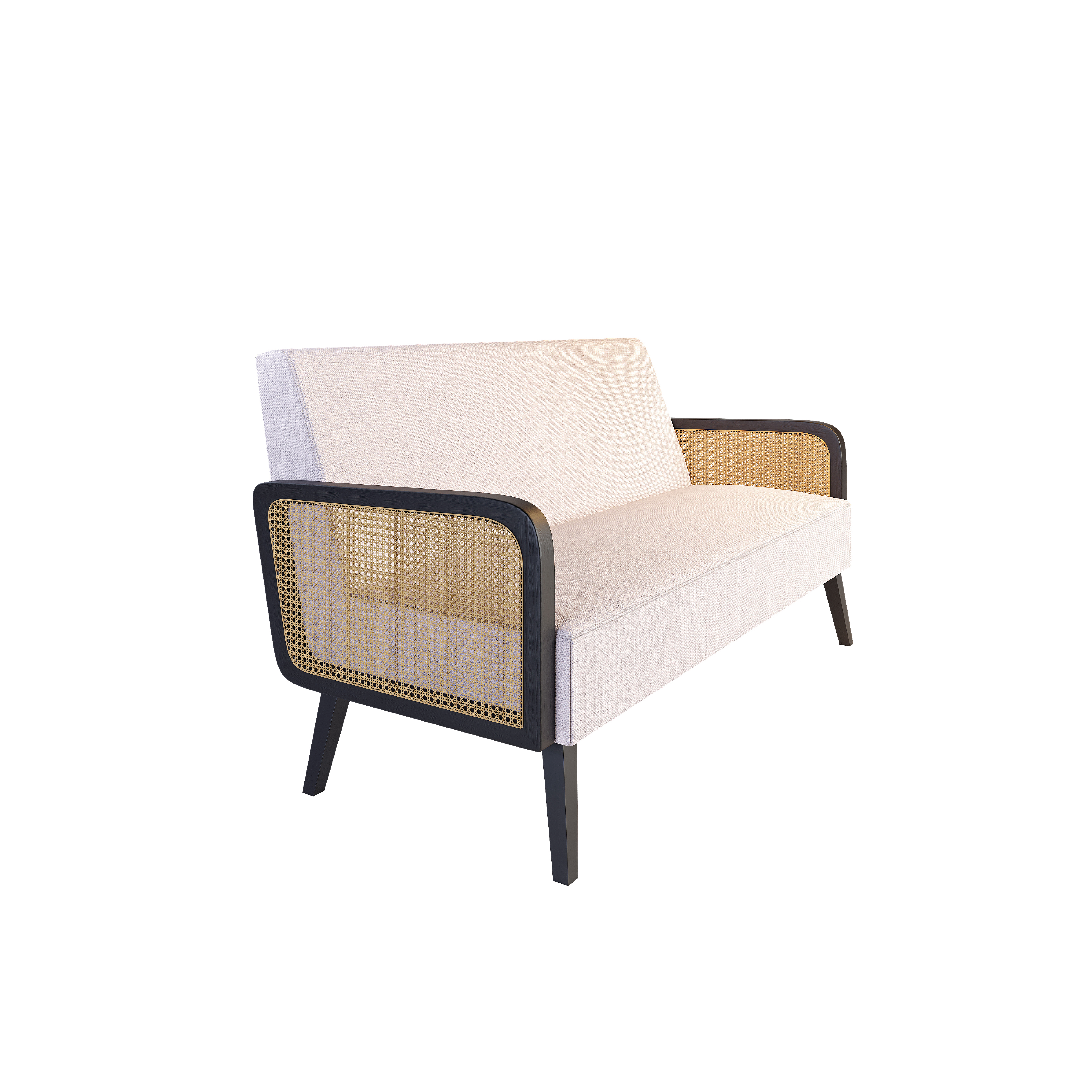 Подлокотники из натурального ротанга придают мебели особое тепло, а лаконичные формы создают стильный современный образ. Этот диван гармонично сочетает природные материалы и актуальный дизайн.