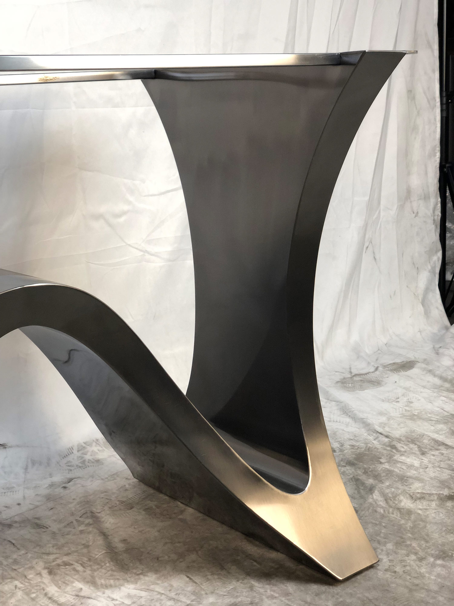 Подстолье 2130EM с эффектным покрытием полированное жженное железо сочетает в себе стильный дизайн и функциональность.